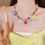 ネックレス ブレスレット レディース 菊 チョーカー 鎖骨チェーン ビーズ カラフル ナチュラル ボヘミア ホリデー 夏 サマー 鮮やか アクセサリー 首飾り 可愛い