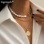 チョーカー ペンダント ネックレス チェーン ビーズ パール コイン レディース ゴシック イミテーション 2023 多層 マルチレイヤー