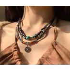 ネックレス ペンダント ターコイズ ビーズチョーカー インディアン ウェスタン 流行 ファッション ペア メンズ レディース