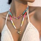 【並行輸入品】Wiwpar カラフルクラシックヘイシチョーカービーズチェーンネックレス サーファーレイヤードネックレス コンクペンダント レディース