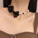 【並行輸入品】Rumtock パールビーズチョーカー ブラックリボン付き レディース ガールズ ハロウィン かわいいネックレス パーティージュエリー