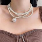 【送料無料】 チョーカー ネックレス ステンレス チェーン ビーズ パール レディース トレンド スチール 明るい セーター ジュエリー パーティ アクセサリー イミテーション
