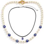 【並行輸入品】イーブルアイネックレス パールゴールドビーズチョーカー レディース メンズ ブルーガラスアイペンダント 保護 カップルジュエリー Ojo