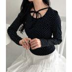 tシャツ チョーカーリボンドット長袖トップス レディース