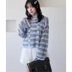 カーディガン 「チョーカー付き」2way透かし編みボーダーカーディガン レディース