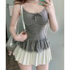 キャミソール ドット柄レースチョーカー付きペプラムキャミソール