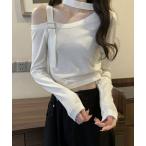 tシャツ チョーカー付き オフショルダー 長袖 無地 レディース