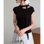 ニット セーター 「紐取り外し可能」「umm.」ミニブークレチョーカー半袖プルオーバー レディース