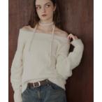 ニット セーター Multi-way choker loose off-shoulder knit / マルチウェイチョーカールーズオフショルニット