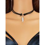 ジュエリー レディース ネックレス ファッション チョーカー ネックレス 2連 レトロ フェザーチャーム シルバーカラー 黒色