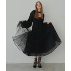 ワンピース チョーカー付レイヤードチュールニットソーワンピース