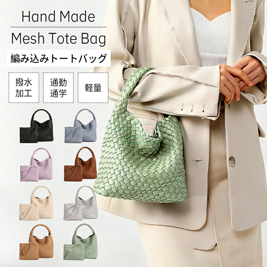編み込みトートバッグ メッシュトートバッグ トートバッグ レディース メッシュトート マチ広トートバッグ トートバック バッグ PUレザー ハンドメイドバッグ イントレチャート 編みバッグ 編みこみ