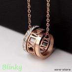 ネックレス レディース メンズ ダブルリングネックレス アクセサリー ラインストーン ステンレス ピンクゴールド K18GP ダイヤ 誕生日プレゼント