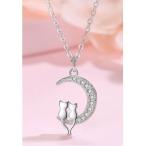 ネックレス ジルコニア月と仲良し猫のネックレス レディース