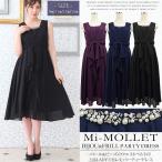 【選べるアイテムM】パーティードレス 結婚式 ドレス ミモレ 送料無料 胸元ビジューデザインタックフリルが美しいジョーゼットシフォンミモレ丈パーティードレス