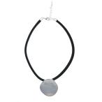 【並行輸入品】ハンマー仕上げ マットシルバー ペンダント ブラックレザーネックレス レディース ガールズ チョーカー トレンディ ジュエリーギフト 1