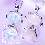 石付きリボン装飾 キャット(ネコ) オーバル&ドロップストーンボディ レディース ペンダント ネックレス「ブルームーンストーンorローズクォーツ」