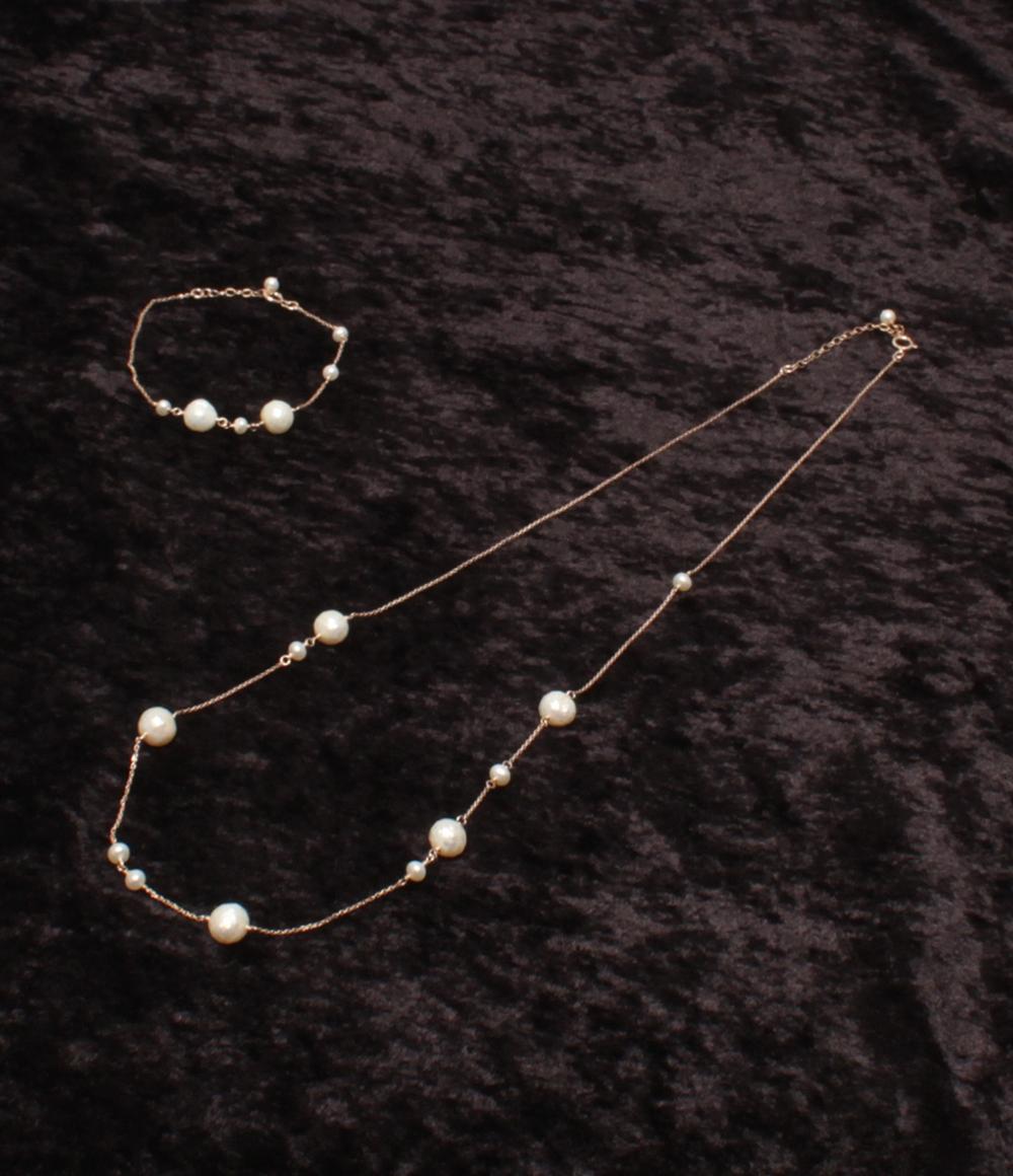 【全品5%OFFクーポン30日23:59迄】【中古】 美品 ネックレス ブレスレット K10 淡水パール 2点セット レディース