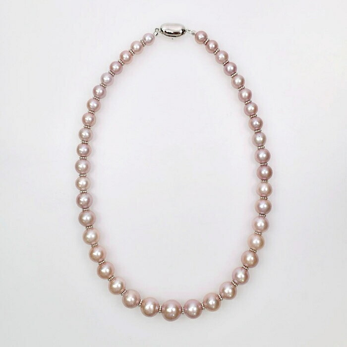 【50%OFF】SV 淡水真珠 ナチュラルラベンダーカラー ネックレス P 約7.0-12.0mm 約44cm / デザイン テリ きれいめ 上品 エレガント 華やか スーツ オフィス セレモニー シルバー ピンク サイズグラデーション アンティーク