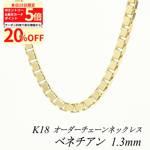 【20%OFFクーポン+Wエントリー&楽天カードでP5倍23:59まで】18金 ネックレス ベネチアンチェーン1.3mm 長さ選べるオーダーチェーン 40cm〜120cm 45cm 50cm 55cm 60cm 18金 K18 18K イエローゴールド