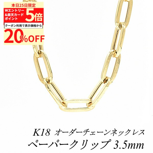 【20%OFFクーポン+Wエントリー&楽天カードでP5倍23:59まで】18金 ネックレス ペーパークリップチェーン 3.5mm 長さ選べるオーダーチェーン 40cm〜120cm 45cm 50cm 55cm 60cm 18金 K18 18K イエローゴールド
