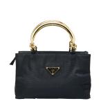 プラダ 三角ロゴプレート ハンドバッグ ネイビー ゴールド ナイロン レディース PRADA 【中古】