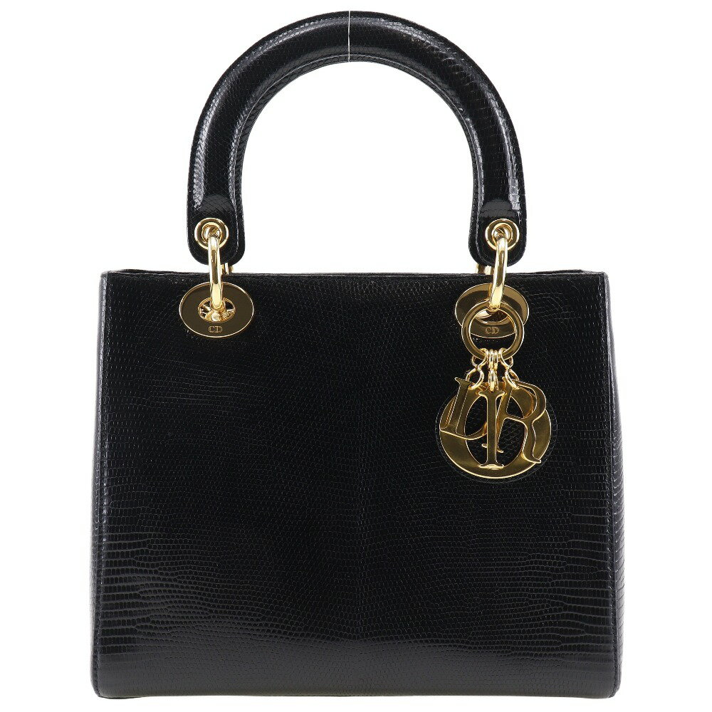 【スーパーセール10%OFF対象】クリスチャンディオール Dior レディディオール ハンドバッグ リザード イタリア製 黒 手提げ ファスナー Lady Dior レディース【中古】A-ランク