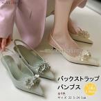 パンプス ポインテッドトゥ バックストラップ バックストラップサンダル リボン ヒール 大人 パンプスサンダル 歩きやすい 履きやすい おしゃれ 美脚 結婚式