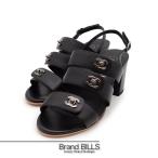 美品 CHANEL シャネル ココマーク サンダル レディース ターンロック バックストラップ レザー ブラック #37 1/2 24.5cm G32651 送料無料 【中古】