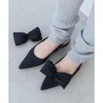 リボン パンプス レディース スリングバック バックストラップ リボン ポインテッドトゥ 5cm キトゥンヒール V3349AL ZOZO 結婚式 通勤 通学 リボン ミュール