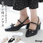 パンプス 靴 シューズ オフィス きれいめ リボン付き バックストラップ 太ヒール 合皮 滑り止め レディース Honeys ハニーズ リボン付パンプス