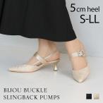 結婚式 パンプス 痛くない 歩きやすい スリングバック セパレート ポインテッドトゥ ビジュー ストラップ 5cm ヒール サテン レース メタリック ラメ J3561AL