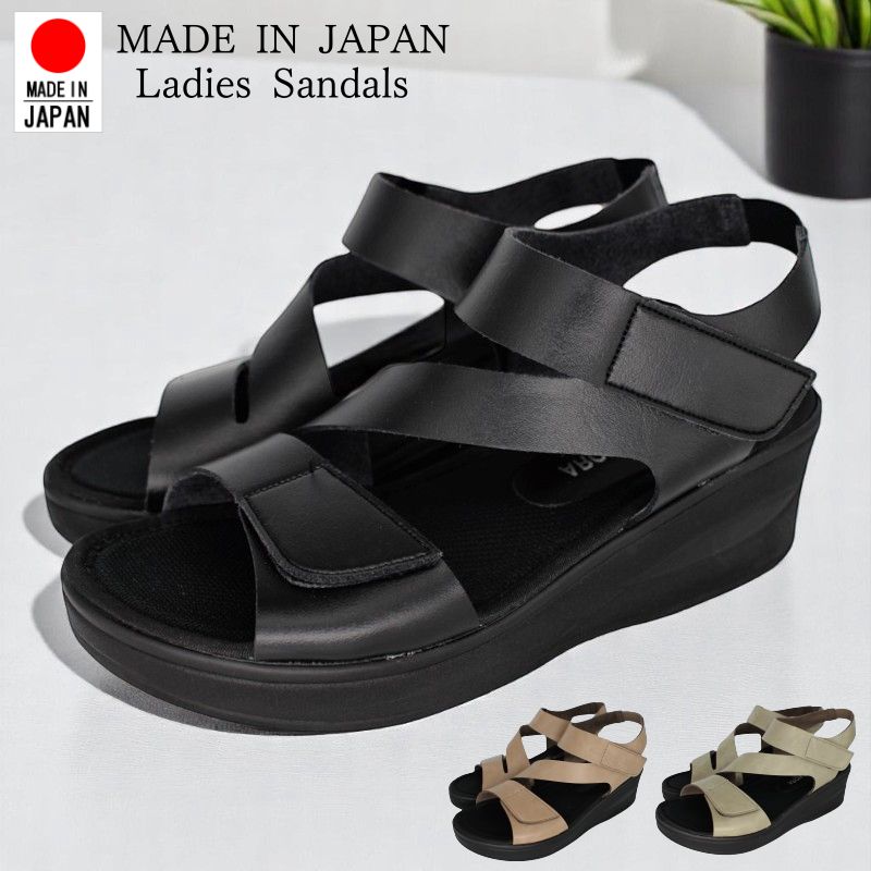 サンダル レディース ウェッジソール 歩きやすい コンフォートサンダル 厚底 痛くない オフィス サンダル 黒 美脚 疲れにくい 幅広 甲高 ゴムストラップ オフィスサンダル バックストラップ 日本製 国産 クロワッサン ブラック ブラウン ゴールド 4591