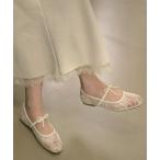 サンダル シアー 刺繍 リボンストラップ フラット バレエシューズ サンダル レディース