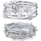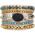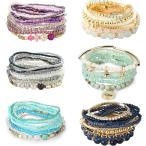 【並行輸入品】Gleamart ボヘミアンラップブレスレット2点セット マルチレイヤーバングル ビーズ付き レディース