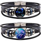 【並行輸入品】星座ブレスレット2個 レディース メンズ 12星座レザービーズブレスレット 調節可能なパンクカフバングル 銅 その他