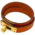 エルメス HERMES ケリー ドゥブルトゥール ブレスレット 2連 バングル ブレスレット レザー オレンジ レディース 中古