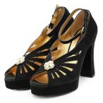 【未使用】CHANEL シャネル パンプス G45455 COCOマーク パール スウェード レザー スリングバック ハイヒール レディース 37C 黒 金