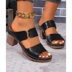 サンダル ダブルベルトチャンキーヒールサンダル レディース
