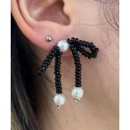 ピアス 両耳用 ビーズダブルリボンピアス レディース