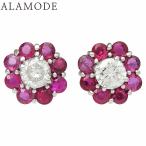 R0.68,0.68/D0.353,0.360 フラワールビーピアス プラチナ Pt900 3.1g レッド赤 レディース 40802172620【中古】【アラモード】