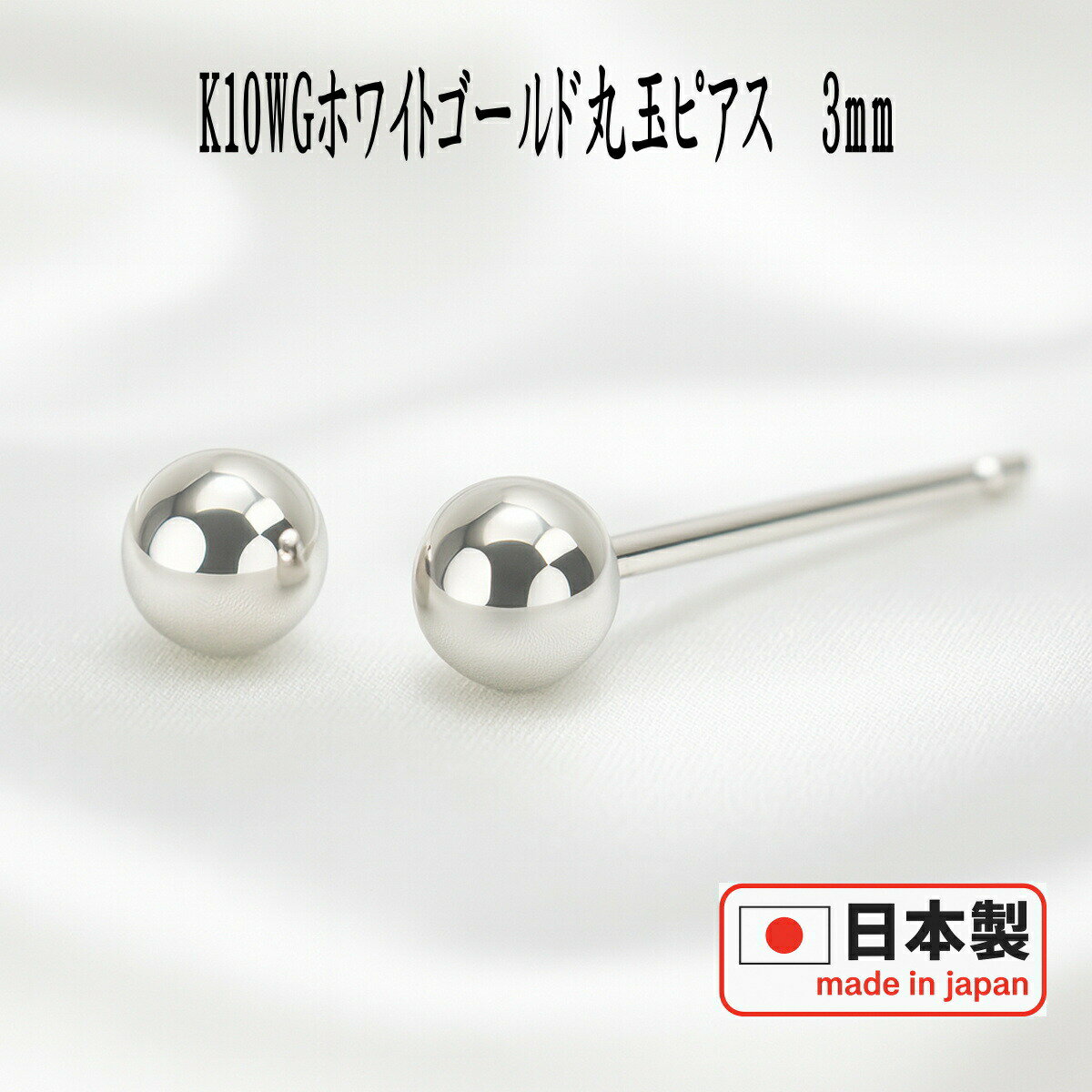 【10%OFF&事前クーポン配布中】K10WGホワイトゴールド丸玉ピアス 3mm ピアス 10k 10金 ピアス k10 ピアス 10金 丸玉ピアス K10 ピアス 10k 丸玉 ピアス ボール ピアス セカンドピアス レディース