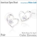 オープンハート ピアス K10 レディース メンズ ホワイトゴールド WG キュービックジルコニア アメリカンオープンハート 4月 誕生石 両耳用 ポスト 刻印 可能 名