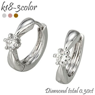 ピアス フープピアス 中折れピアス ダイヤモンド 一粒ダイヤモンド 0.3カラット 18金 k18 イエローゴールド ピンクゴールド ホワイトゴールド 18k 品質保証書 女性 レディース ジュエリー アクセサリー 人気 おすすめ プレゼント ギフト 贈り物 送料無料 SSS