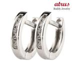 18金 フープピアス ダイヤモンド 0.1ct ホワイトゴールド 1.6×9.6mm メンズ レディース 両耳 プレゼント ギフト