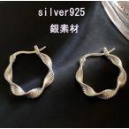ピアス レディース フープピアス ループピアス スクロール ひねり ウェーブ メタル シルバー925 ホワイトゴールド 2個セット アレルギー対応 18金