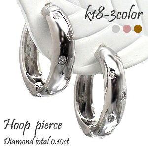 ピアス フープピアス 中折れピアス ダイヤモンド 0.1カラット 18金 18k k18 イエローゴールド ピンクゴールド ホワイトゴールド 品質保証書 女性 レディース ジュエリー アクセサリー 人気 おすすめ プレゼント ギフト 贈り物 送料無料 SSS