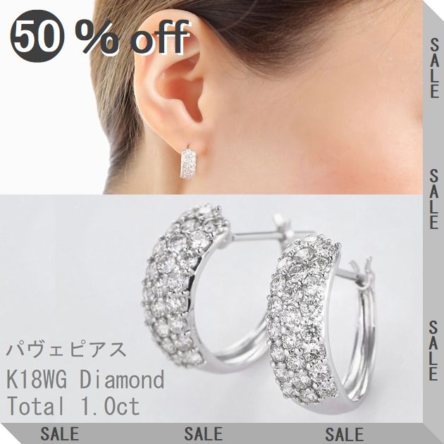 ダイヤモンド ピアス パヴェ K18 1.0カラット ホワイトゴールド レディース ギフト 人気 おすすめ 18金 豪華 フープピアス Hカラー SIクラス GOODカット 送料無料 ダイヤピアス ジュエリー 30代 40代 50代 誕生日 プレゼント 受注品