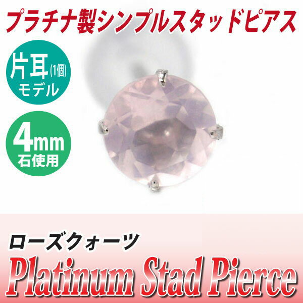 ローズクォーツ ピアス Pt900 プラチナ 4mm 定番 スタッド 4mm 片耳用 プラチナ 送料無料 金属アレルギーに優しい fourm クリスマス 母の日 レディース メンズ 男性 女性 ラッピング 包装 袋 誕生日 プレゼント ケース 箱 華奢 可愛い おしゃれ 手紙 ギ