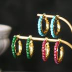 天然石 ピアス レディース 22金 22K アンティーク ゴールド 天然石ピアス 大ぶり フープピアス ターコイズ 水晶 nanotta AER043